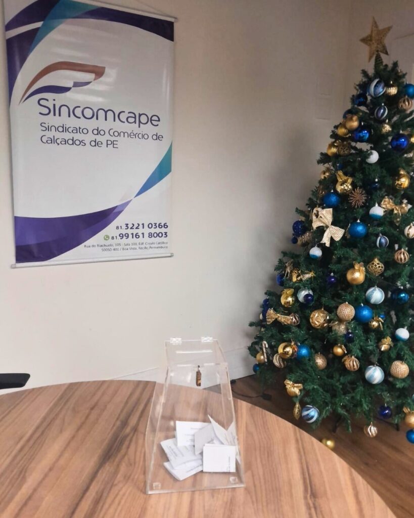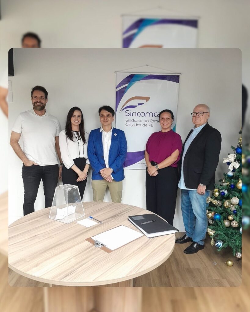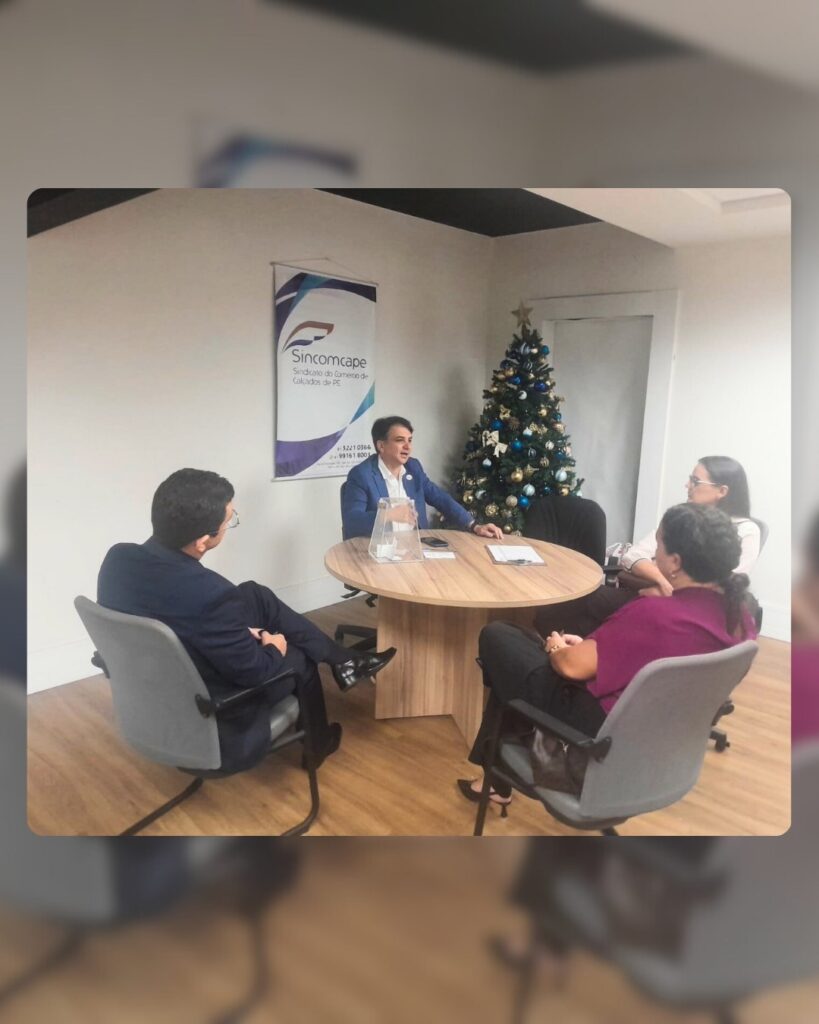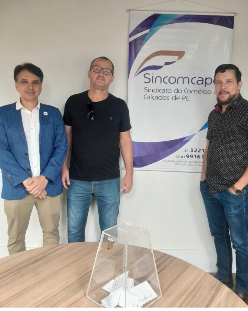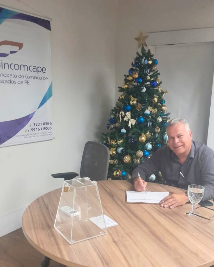 Foi realizada nesta terça-feira, 02/12/2025, a eleição da diretoria do Sincomcape para gestão 2026 a 2030. Na ocasião, estiveram presentes o presidente reeleito, João Maciel, o vice presidente Marcos Barbosa, toda a diretoria do sindicato, além do presidente e vice-presidente do Sindilojas Recife, Fred Leal e Mário Mawad, respectivamente, e dos advogados da Federação Fecomercio PE Dra. Jullyane Vasconcelos e Dr. Leonardo Franklin.